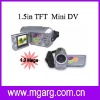 Mini Dv Digital Camcorder (DV136) Mini Dv Digital Camcorder (DV136) 1.5" TFT LCD 4X Digital zoom sd card slot Description 1. Image Sensor: 1.3 MP CMOS Sensor 2. Display: 1.5" TFT Display (280 x 220 pixels) 3. External Memory: SD/ MMC Card (Up to 1 GB) 4. Lens: F3.1, f= 6.5mm (Fixed) 5. Focus Range: 1.4m infinity 6. RO mode: 15cm 25cm 7. Shutter: Electronic shutter 8. Image file format: JPEG 9. Video file format: AVI10. Resolution: 640 x 480 (30 or 15fps); 320 x 240 (30 or 15fps) 11. Dimensions: 94.6mm x 57.1mm x 40.5 mm 12. Power Source: 3 x AAA Battery 13. Power Control: Auto Power Off, Manual Off 14. Digital Zoom: 4 x Digital Zoom 15. Self-timer: 10 Seconds, 20Seconds 16. White Balance: Auto/Daylight/Tungsten/Fluorescent/Cloudy 17. Exposure: Auto/Manual: ± 2.0EV in steps of 0.5EV 17. OSD Language: English, ChineseSystem Requirements 1. Operation system: Windows 98SE/2000/ME/XP 2. Memory: At least 128 MB of higher 3. CPU: Inter Pentium 166MHz or CPU of equal performance 4. USB: Standard USB 1.1 port or higher 5. HD: 500MB free HDD space 6. Driver: 4 x speed CD- ROM drive or higher 7. Sound card and display card shall support DirectX8 or higher version